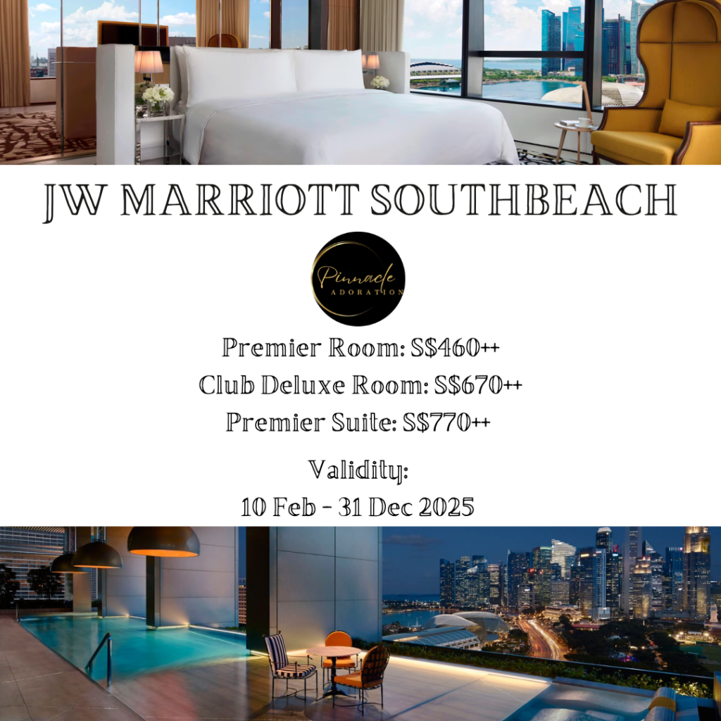 We are delighted to collaborate with JW Marriott Singapore to offer a special rate for the following Room Tiers – Club Benefits included (More info upon request from Hotel).